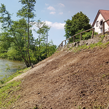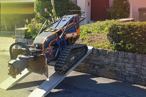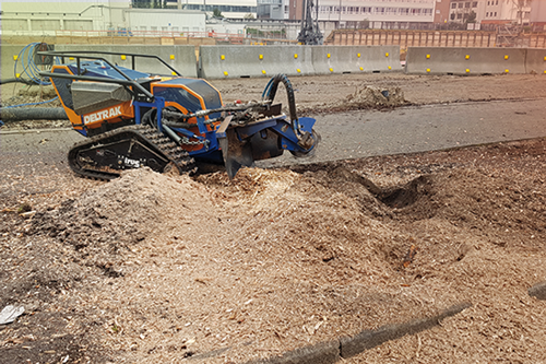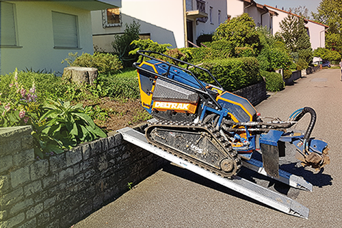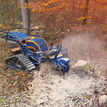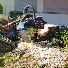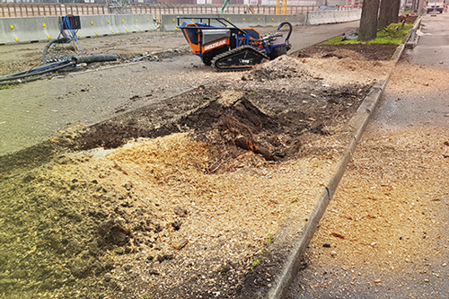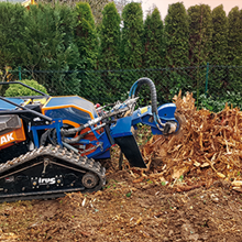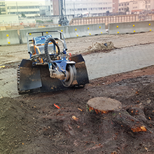 Die Entfernung von Wurzelstöcken und Baumstümpfen mit Hilfe unserer leistungsstarken Wurzelstockfräse hat im Vergleich zu anderen Verfahren viele Vorteile. Zum Beispiel entfällt das zeitintensive Ausgraben der Wurzelstöcke mit Pickel und Schaufel, oder den Einsatz eines Baggers. Die Maschine ist trotz einer Durchfahrtsbreite von 125 cm und ca. 950 kg Gewicht, sehr wendig und somit auch auf begrenztem Raum sicher zu rangieren. Das Raupenfahrwerk verteilt sein Gewicht gleichmäßig auf den Untergrund, so dass der Boden kaum belastet wird. Dort, wo bisher der Baumstumpf stand, verbleibt nach dem Abfräsen ein 10 bis 30 cm tiefes Loch. Die entstandenen Holzspäne dienen als hochwertiger Mulch und füllen das entstandene Loch wieder auf. So können Sie den gewonnenen Platz sofort weiter verwenden.