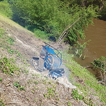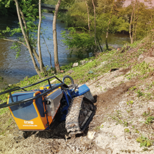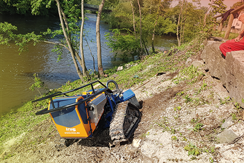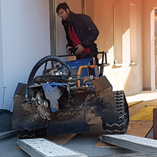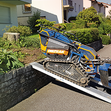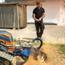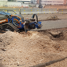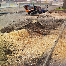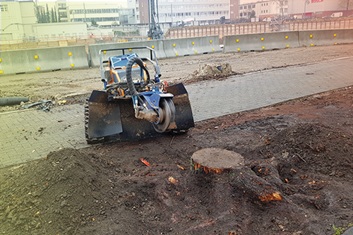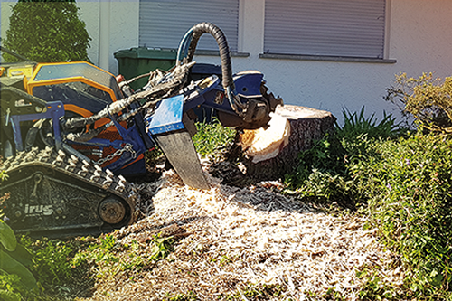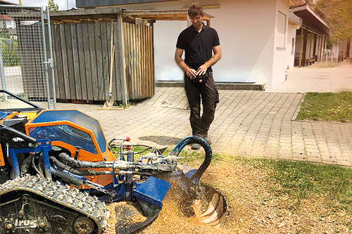 Die Entfernung von Wurzelstöcken und Baumstümpfen mit Hilfe unserer leistungsstarken Wurzelstockfräse hat im Vergleich zu anderen Verfahren viele Vorteile. Zum Beispiel entfällt das zeitintensive Ausgraben der Wurzelstöcke mit Pickel und Schaufel, oder den Einsatz eines Baggers. Die Maschine ist trotz einer Durchfahrtsbreite von 125 cm und ca. 950 kg Gewicht, sehr wendig und somit auch auf begrenztem Raum sicher zu rangieren. Das Raupenfahrwerk verteilt sein Gewicht gleichmäßig auf den Untergrund, so dass der Boden kaum belastet wird. Dort, wo bisher der Baumstumpf stand, verbleibt nach dem Abfräsen ein 10 bis 30 cm tiefes Loch. Die entstandenen Holzspäne dienen als hochwertiger Mulch und füllen das entstandene Loch wieder auf. So können Sie den gewonnenen Platz sofort weiter verwenden.